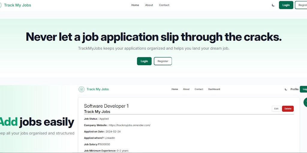 Track My Jobs: Land your dream job faster with effortless organization Track My Jobs helps you to centralize all your job applications in one place, track progress, deadlines, stay organized, and land