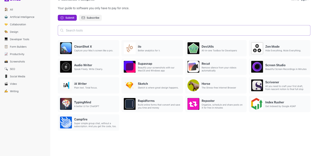 once.tools - Your guide to software you only have to pay for once | Product Hunt