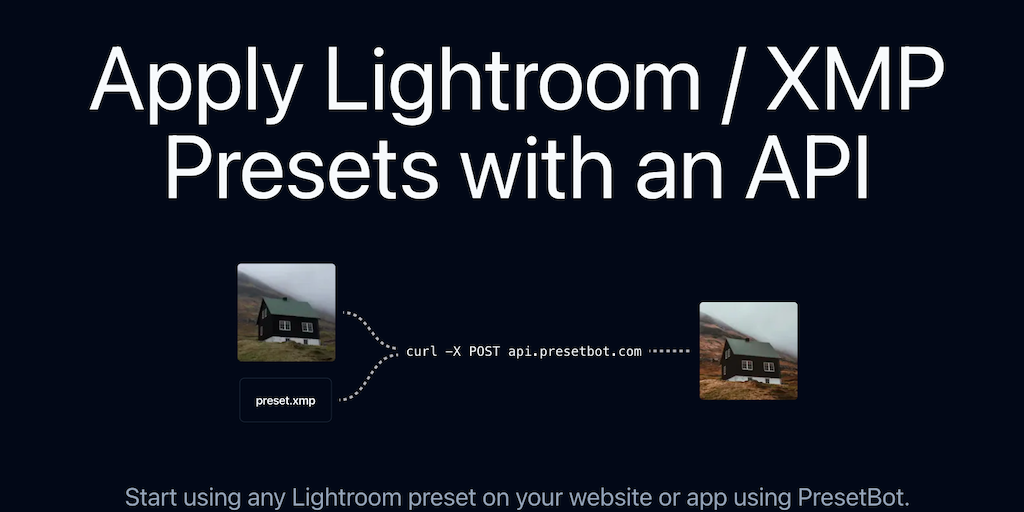 PresetBot - Apply Lightroom/XMP filters over an API | Product Hunt