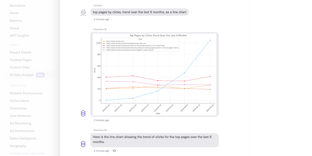 The AI Data Analyst transforms how you interact with your data: connect your data sources effortlessly or upload spreadsheets, ask questions in natural language, and gain actionable insights.