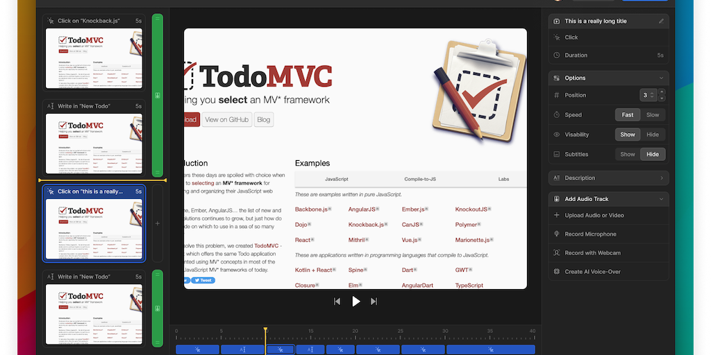 Record as quickly as you can demo your product. Our AI edits the video and removes any mistakes. No need for retakes; you’re done in minutes.