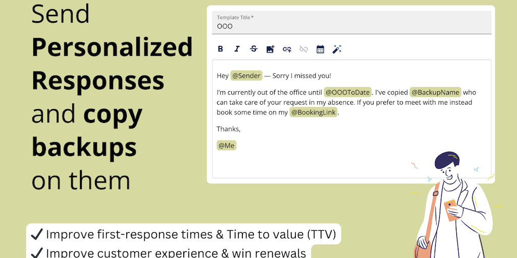 Snoooz is a smart Out-of-Office (OOO) assistant that can send personalized OOO responses, automate OOO tasks, assign backups, create coverage plans, and so much more. Enjoy your well-deserved time-off