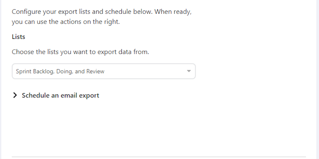 Export from Trello by Blue Cat lets you export cards from Trello to CSV/Excel, or set a schedule and get an email export when you want it.