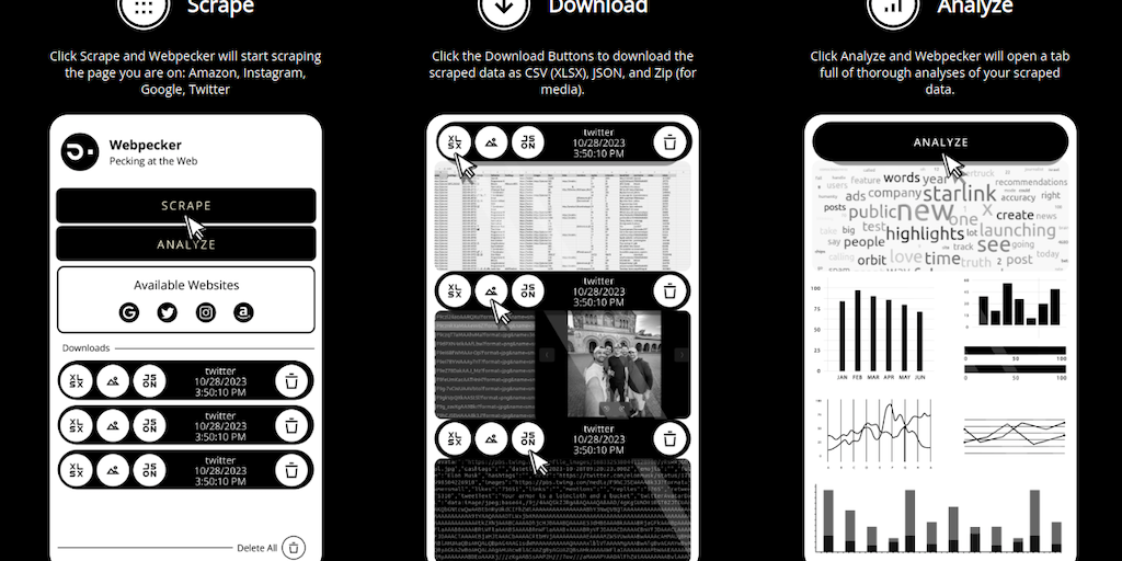 One-click no-code data scraper and analyzer from social networks to search engines! Make Web Useful.