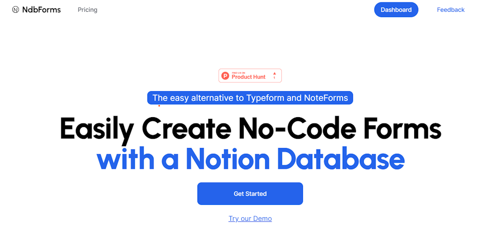 NdbForms - A no-code form builder that integrates with Notion | Product Hunt