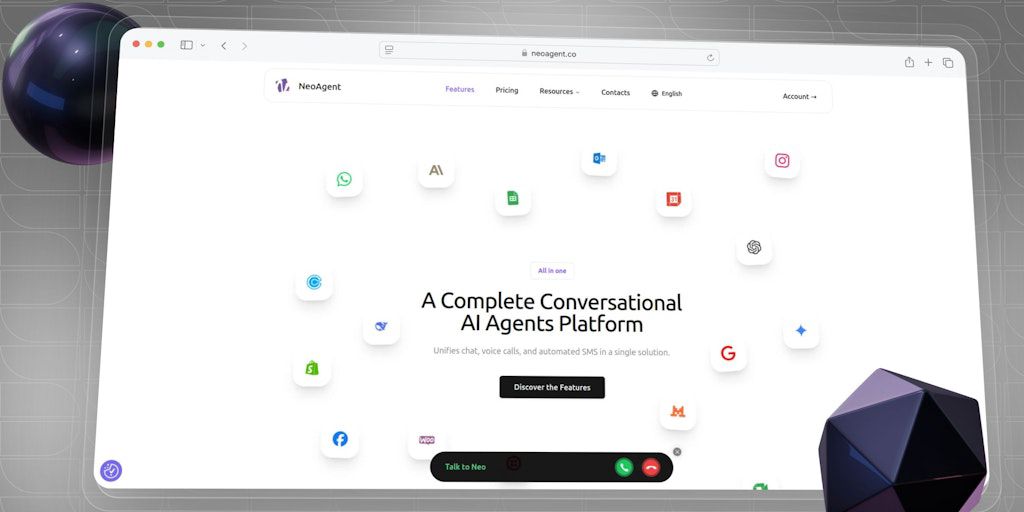 NeoAgent is an AI-powered business automation platform that lets you build a specialized virtual agent to interact with your customers 24/7 across multiple channels: Web Chat, WhatsApp, SMS, and Voice