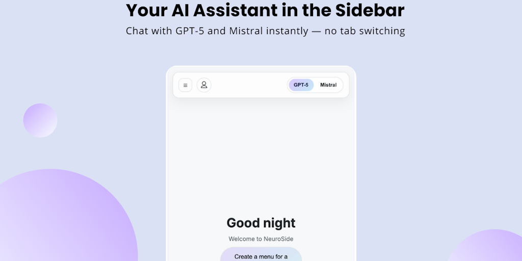 Tab-switching kills flow. We wanted an AI assistant that sits beside what we’re doing — not in another tab. So we built NeuralSide: a minimal AI sidebar for Chrome with GPT-5 & Mistral. A tiny AI copi