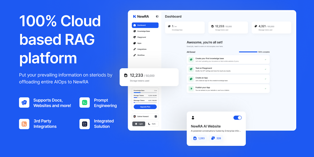 NewRA is a cutting-edge SaaS platform that enables businesses to integrate powerful AI solutions seamlessly. With subscription & white-label options, NewRA leverages custom knowledge bases for persona