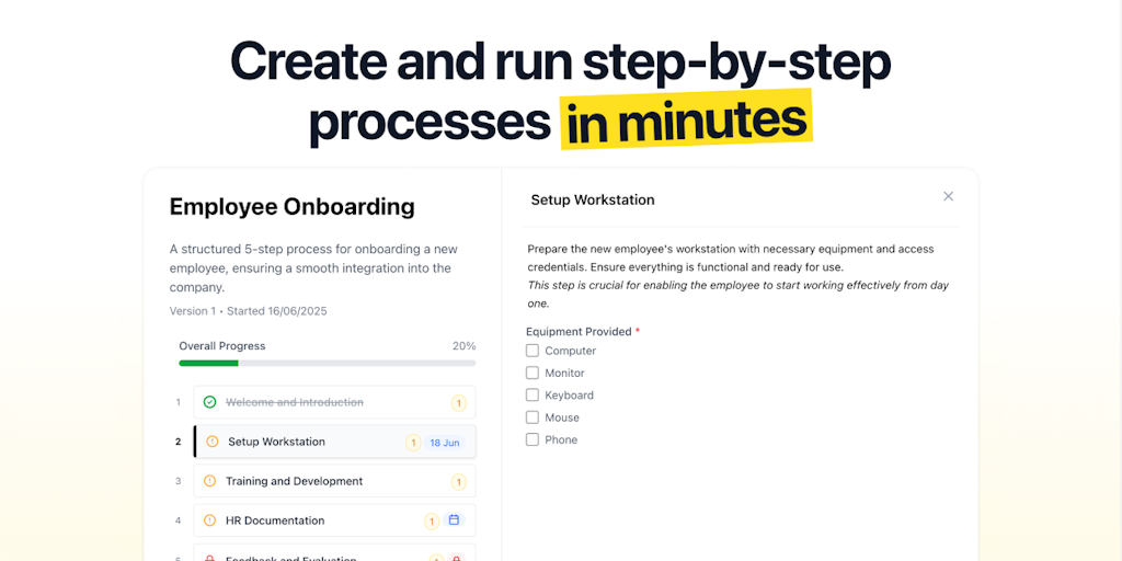 NextStep helps teams create and run step-by-step repeatable SOPs, workflows and checklists in minutes