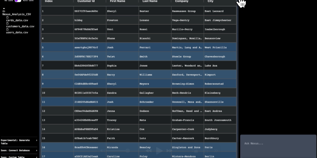 Nexus is the Cursor for your data — no more uploads for tweaks, no more downloads for edits. Just seamless, AI-powered collaboration to build and analyze your connected data. With Nexus, you can do in
