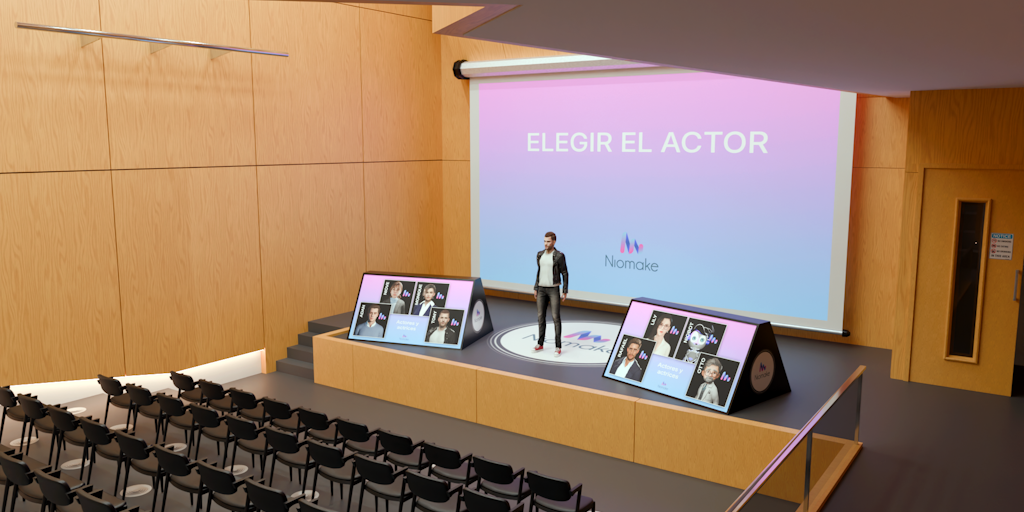 Niomake transforms your documents into interactive and animated 3D experiences using AI and spatial computing. Create stunning presentations with avatars and interactive environments in just 3 clicks.