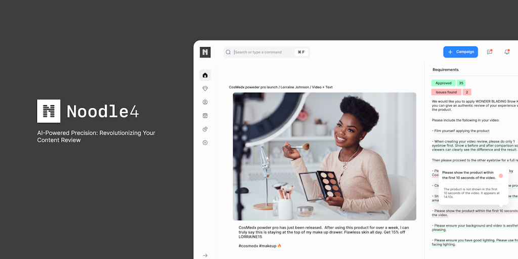 Noodle4 AI - Review UGC & influencer content up to 70% quicker with AI | Product Hunt