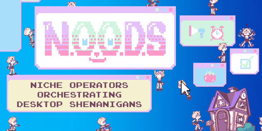 Get ready to spice up your screen with NOODS—Niche Operators Orchestrating Desktop Shenanigans! These cheeky, animated desktop companions bring chaotic fun, quirky reminders, and interactive antics st