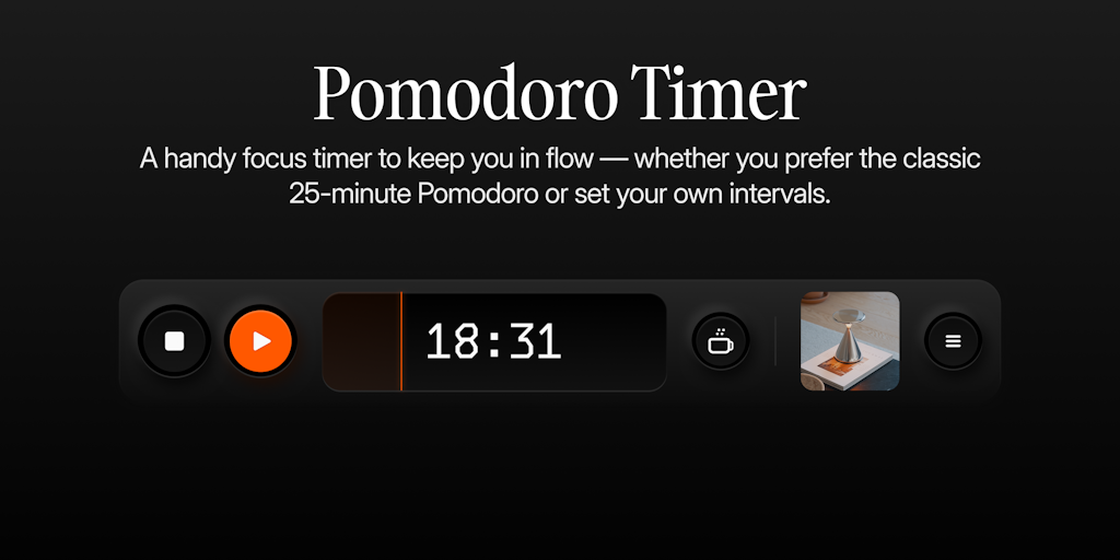 Notchflow transforms your Mac’s notch into a beautifully crafted productivity hub. Control music, run customizable Pomodoro timers, and take mindful breaks — all without leaving your flow.