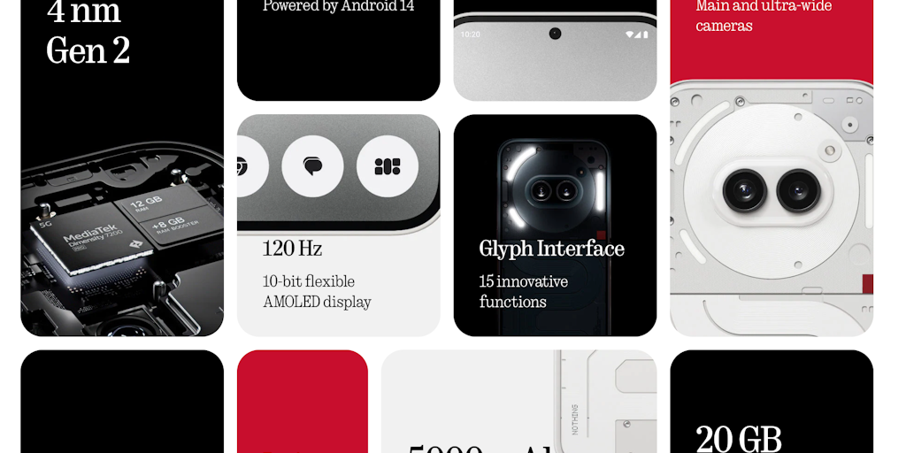 Phone (2a) is a more affordable version of Nothing's flagship device. It features an 8-core chip clocking in at 2.8 GHz and 20 GB RAM and is powered by a Dimensity 7200 Pro processor, co-created with