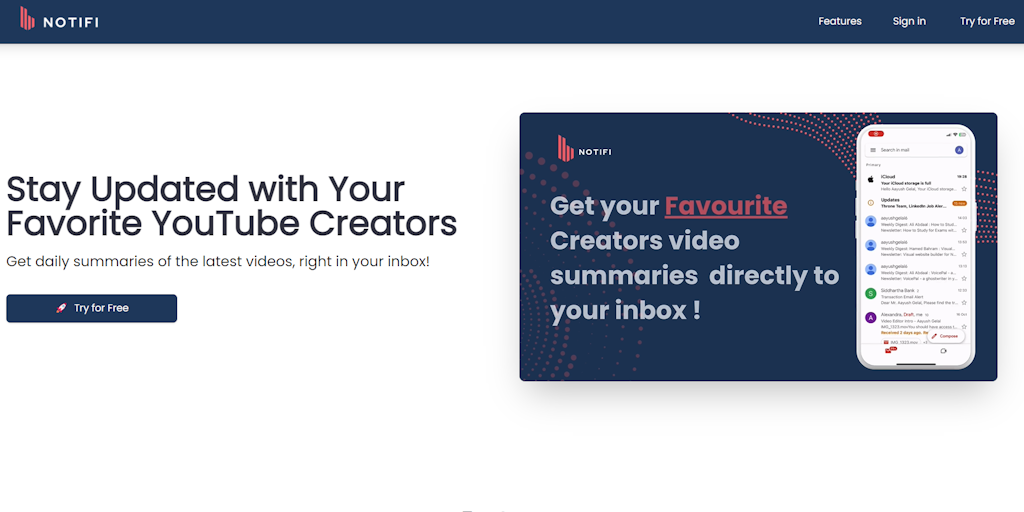 Notifi - Daily summaries of the fav creators, right in your inbox ! | Product Hunt