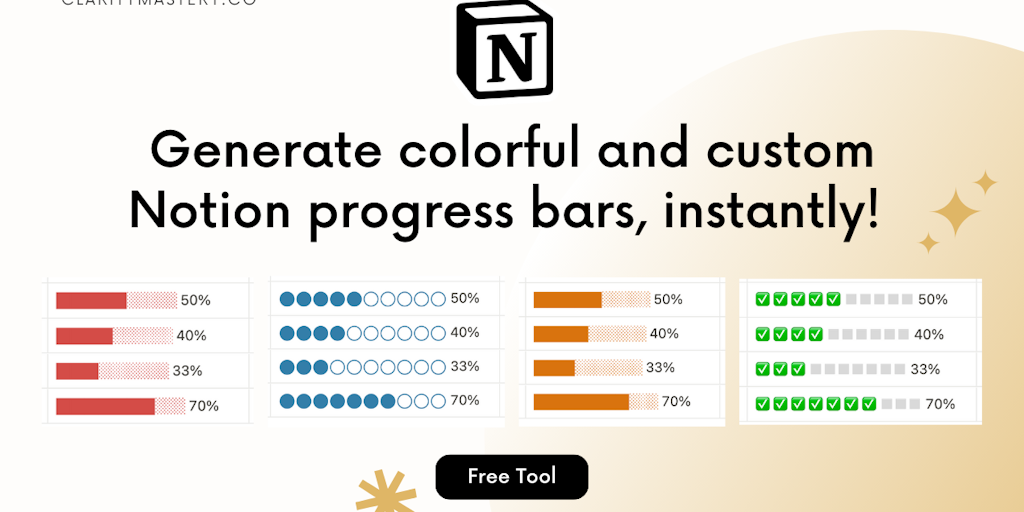 Notion Progress Bar Formula Generator - Create colorful & aesthetic Notion progress bars in 1-click | Product Hunt