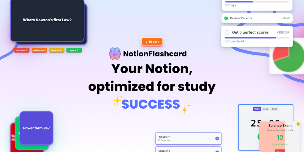 Boost your grades with NotionFlashcard by creating and reviewing flashcards directly in Notion.