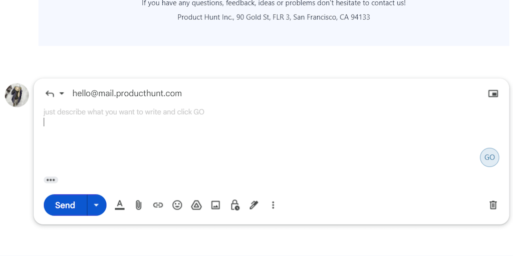 Mocking Bird is a Chrome Extension that generates a replay email based on the received email. The user can describe the key points for generation in the reply box and then click the 'Go' button to ins