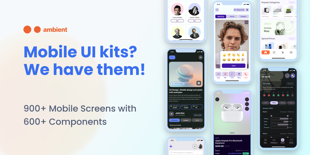 Ambient Design - Download unique mobile app UI kits designed for Figma | Product Hunt