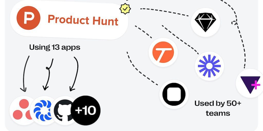 Team at Product Hunt uses Notion, Zoom, Canva, Typeform, GitHub, Figma, Slack and 6 more apps. About 50 teams use Product Hunt. This, but for 300+ more tech teams :)