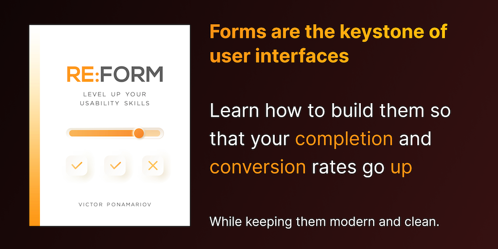 Are you a developer? Solopreneur? Don't have a design background? Cannot afford a designer? I have something for you. A book about how to make your forms better.