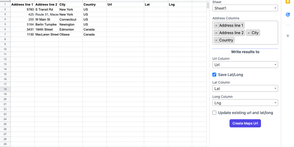 Easy Maps - Create Google Maps url from the address in spreadsheets