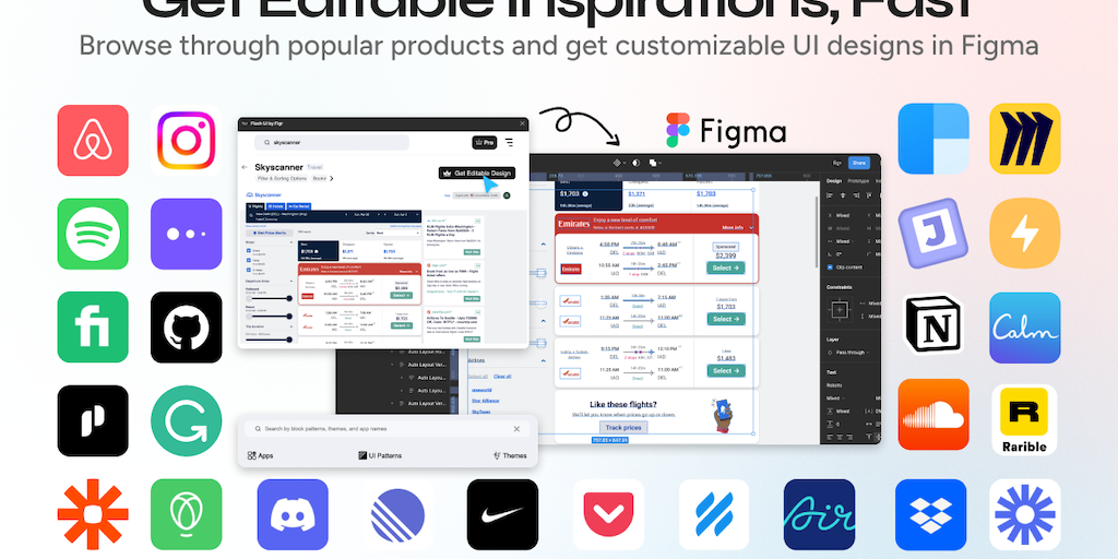 Flash UI by figr.design is a Figma Plugin that provides a one-stop shop for inspiration, research, and editable design files. These aren't just any designs, they're templates from the top products you