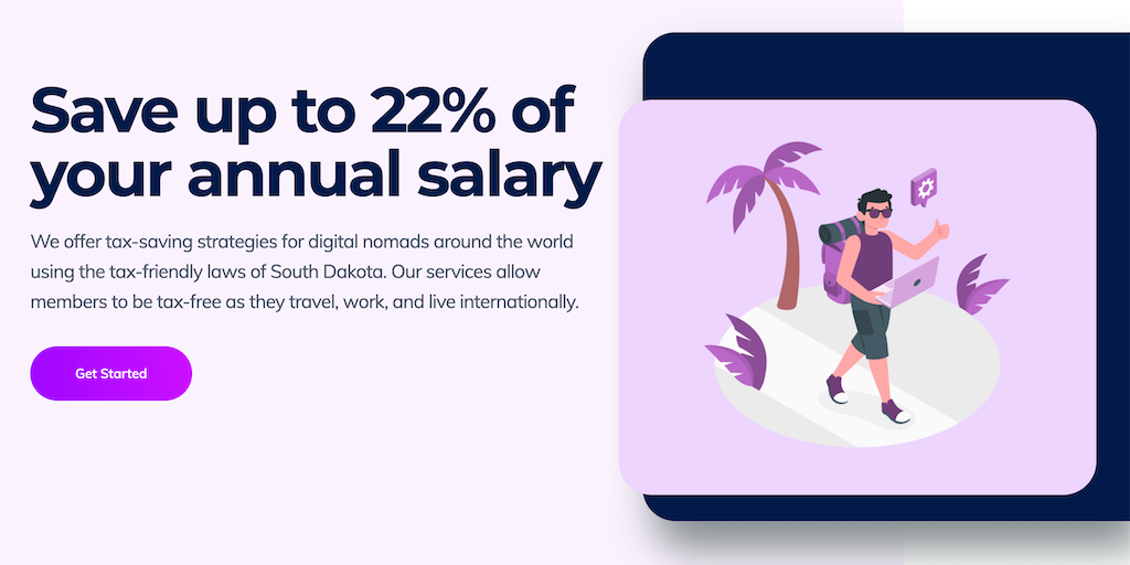 Nomad Haven offers automated tax-saving strategies for digital nomads with the tax-friendly laws of South Dakota. From start to finish, it takes under 30 minutes. Their services allow members to be ta