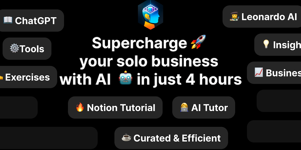 Learn how to use AI to supercharge your solo business in just 4 hours. Save Up to 10 hours Every Week with Our Practical AI Workflows. No AI Knowledge Required. Plus: AI-Powered Tutor at Your Service.
