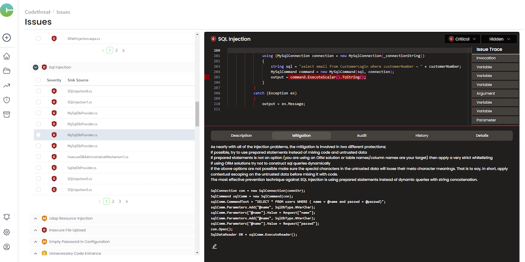 CodeThreat redefines code security with in-depth SAST. We offer precise code analysis, custom security rules, and intelligent DevSecOps integrations, empowering you to build and ship secure code effic
