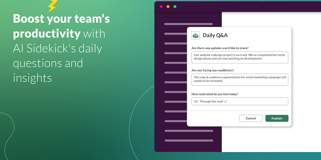 Meet AI Sidekick, your personal GPT-powered Slack assistant. Its like an all-knowing executive assistant that answers team queries without making you sift through docs or meetings. It turns daily Q&A
