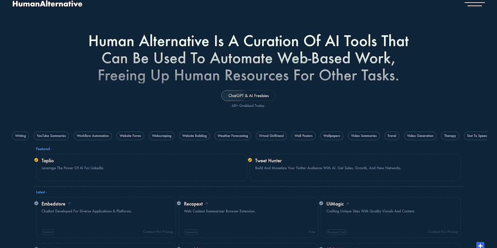 Human Alternative - AI tools to automate web-based work, free up humans | Product Hunt