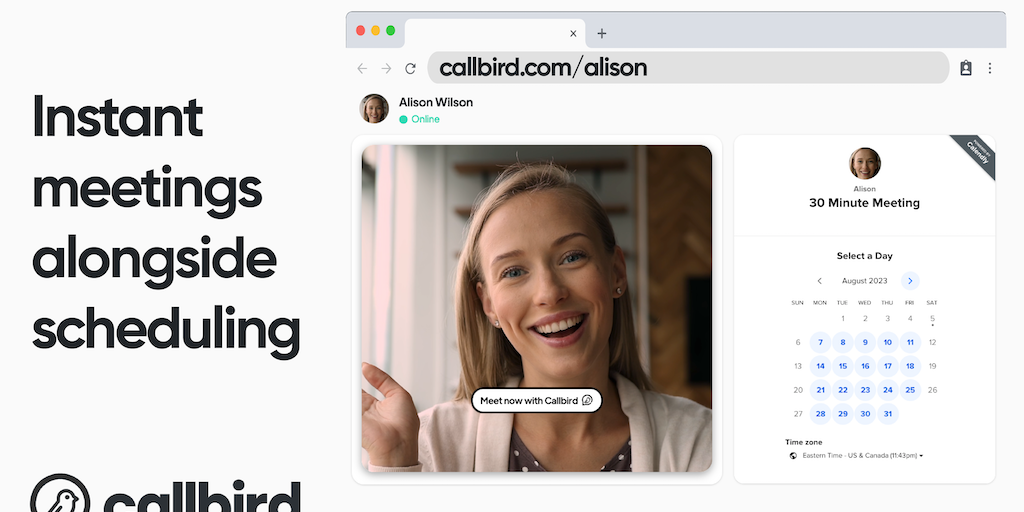Callbird adds instant meetings to Calendly. Callbird allows prospects to meet instantly with salespeople via a link, or straight on the company's website. This leads to shorter sales cycles, less no s