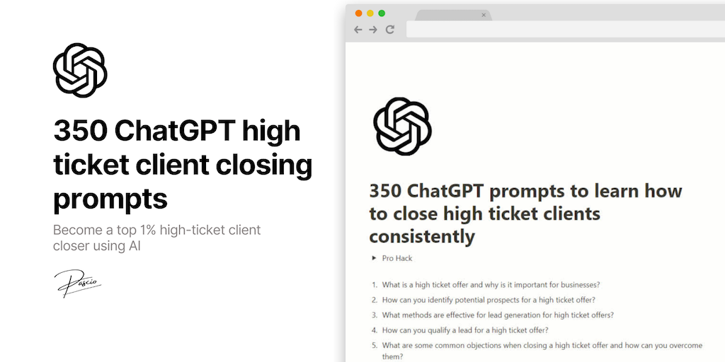 This collection of 100 curated ChatGPT prompts will help you make the most of this new AI tool to supercharge your knowledge on high ticket client closing.