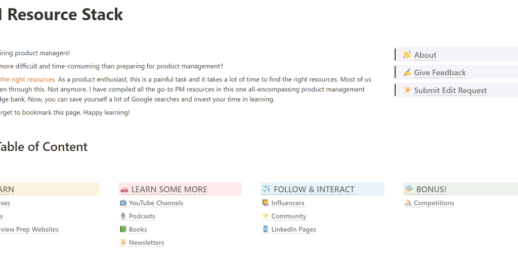 PM Resource Stack - Start product management learning with handpicked resources | Product Hunt