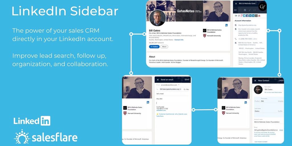 LinkedIn sidebar by Salesflare - Find their emails, add to the CRM and send email sequences | Product Hunt
