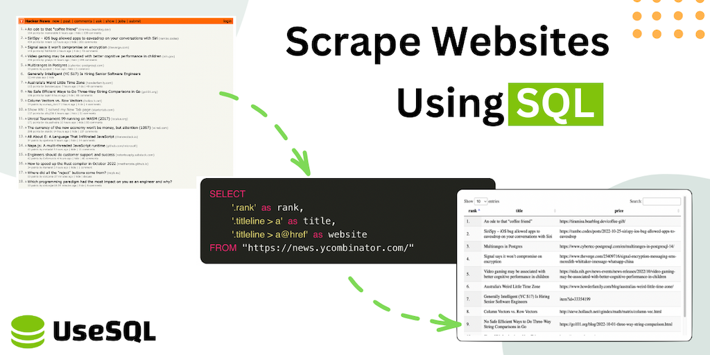 UseSQL for Web Scraping - Extract information from websites using SQL | Product Hunt