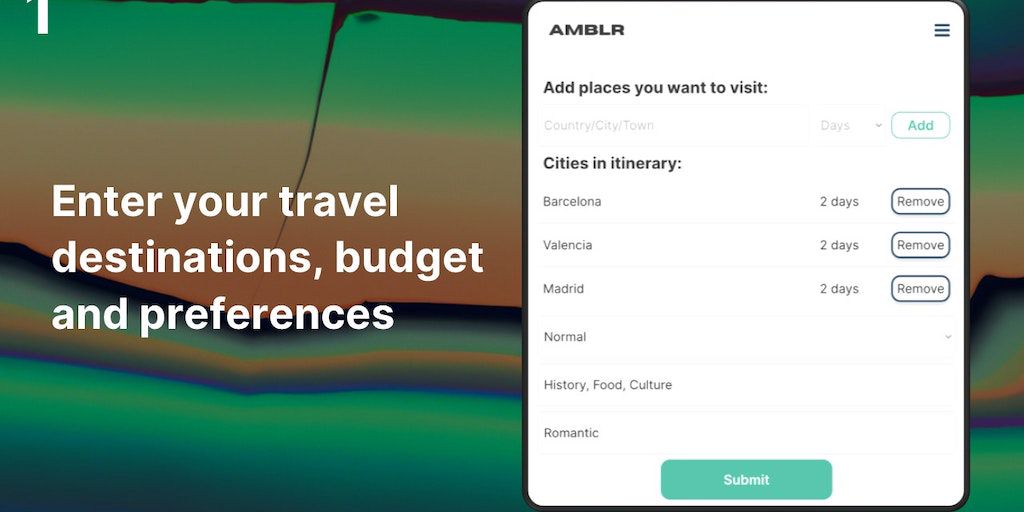 AMBLR - AI Travel Planner - AI-powered dream getaways, one memory at a time | Product Hunt