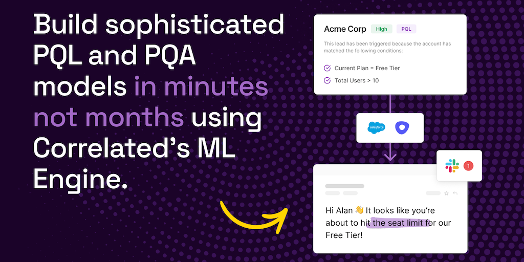 Correlated is the ML-powered tool that helps you convert your self-serve SaaS users and accounts into paid customers. With Correlated, you can identify the key moments when Product Qualified Leads (PQ