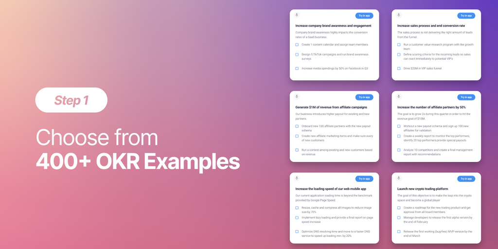 400+ OKR Examples Directory - A curated list of OKR examples for high tech companies | Product Hunt