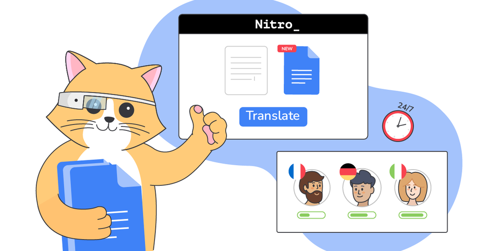 Nitro makes Product and Marketing translations easy! Translate landing pages, emails, blog posts, presentations and documents, etc. >Easy self-service order placement >Upload Google Docs or plain text