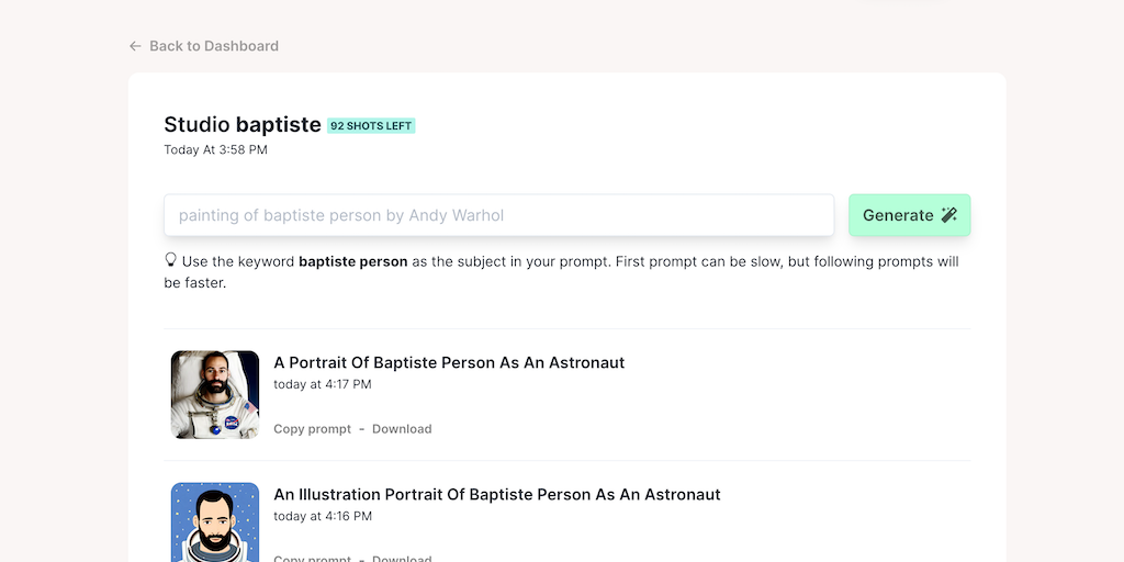 Photoshot is an open-source AI avatar generator that turns you into a virtual work of art! You can experiment with different prompts to dig out the perfect one and have fun creating your own unique st