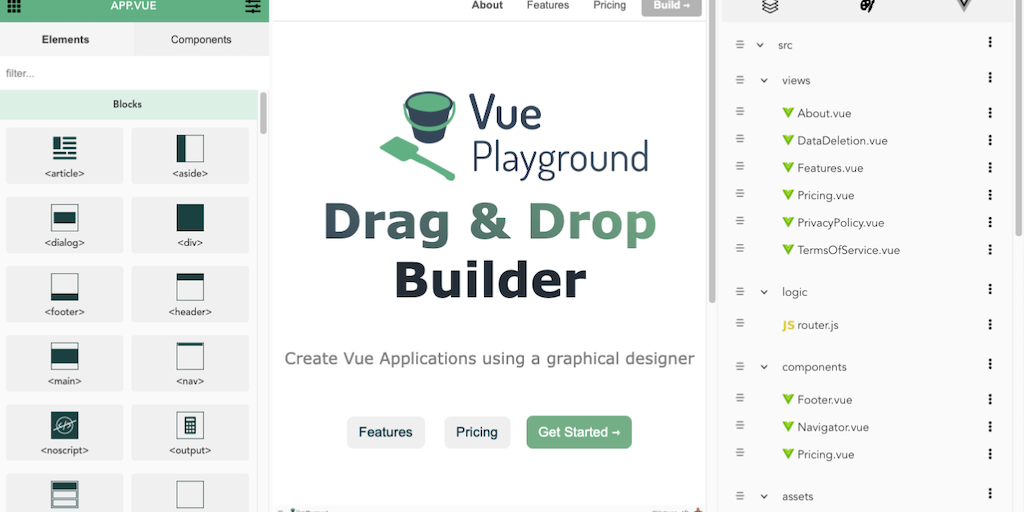 Vue Playground - Visual drag and drop builder for vue components and apps | Product Hunt