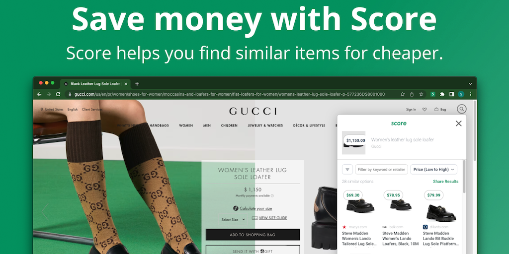 Score is a Chrome extension that saves you hundreds of dollars. Score uses AI to find you hidden deals & affordable alternatives – all while you shop. It works automatically on e-commerce sites, and i