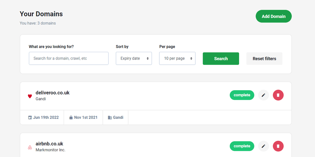 Domain Monitor is the all-in-one suite that provides domain and website uptime monitoring all in one place. Have a domain or SSL that's about to expire? Or simply want to track the performance of your