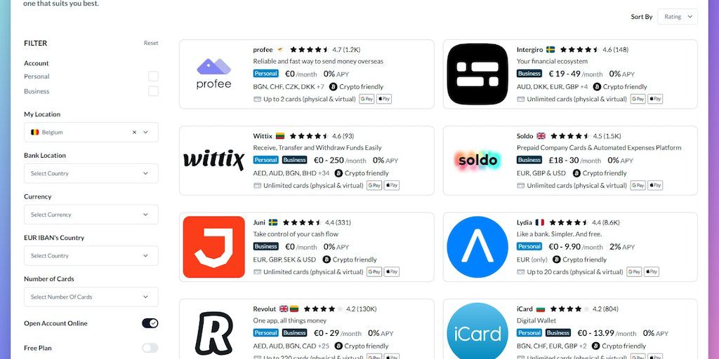 Filter and find the bank that suits you best.