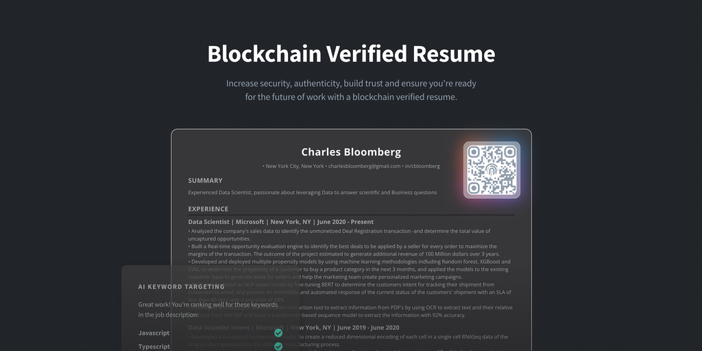 Blockchain Verified Resume - Publish your resume on-chain for instant verification | Product Hunt