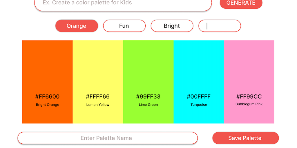 Color palette using ChatGPT 1. Visulize color palettes 2. explore existing palettes 3. Edit color palette, preview and check accessibility 4. View and generate color palette on the go using our mobile