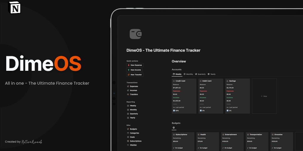 DimeOS - The Ultimate Finance Tracker - No need to struggle with many finance templates anymore | Product Hunt